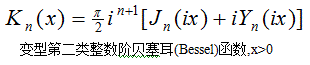 实变量x的变型第二类整数阶贝塞耳(Bessel)函数Kn(x)表示为: