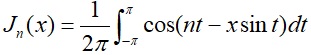 实变量x的第一类整数阶贝塞耳(Bessel))函数Jn(x)定义为: