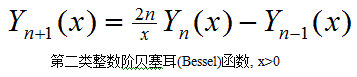 实变量x的第二类整数阶贝塞耳(Bessel)函数Yn(x)具有如下递推关系: