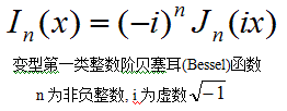 实变量x的变型第一类贝塞耳(Bessel)函数In(x)表示为: