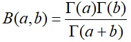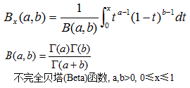 其中a,b>0,0≤x≤1,B(a,b)为贝塔函数,即: