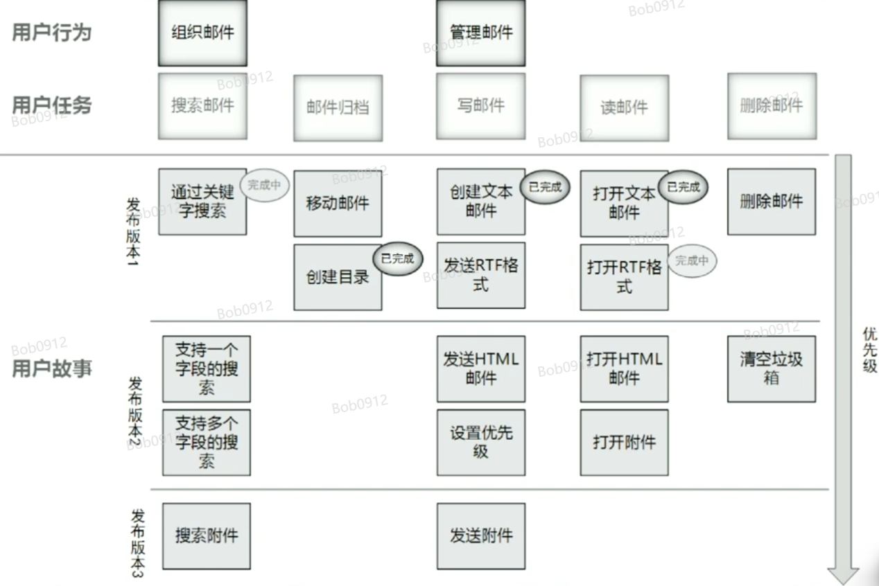 基于以上这张图,我们可以对每个业务点的业务价值进行排序,找出最小可用产品Mvp,并指定发布计划。