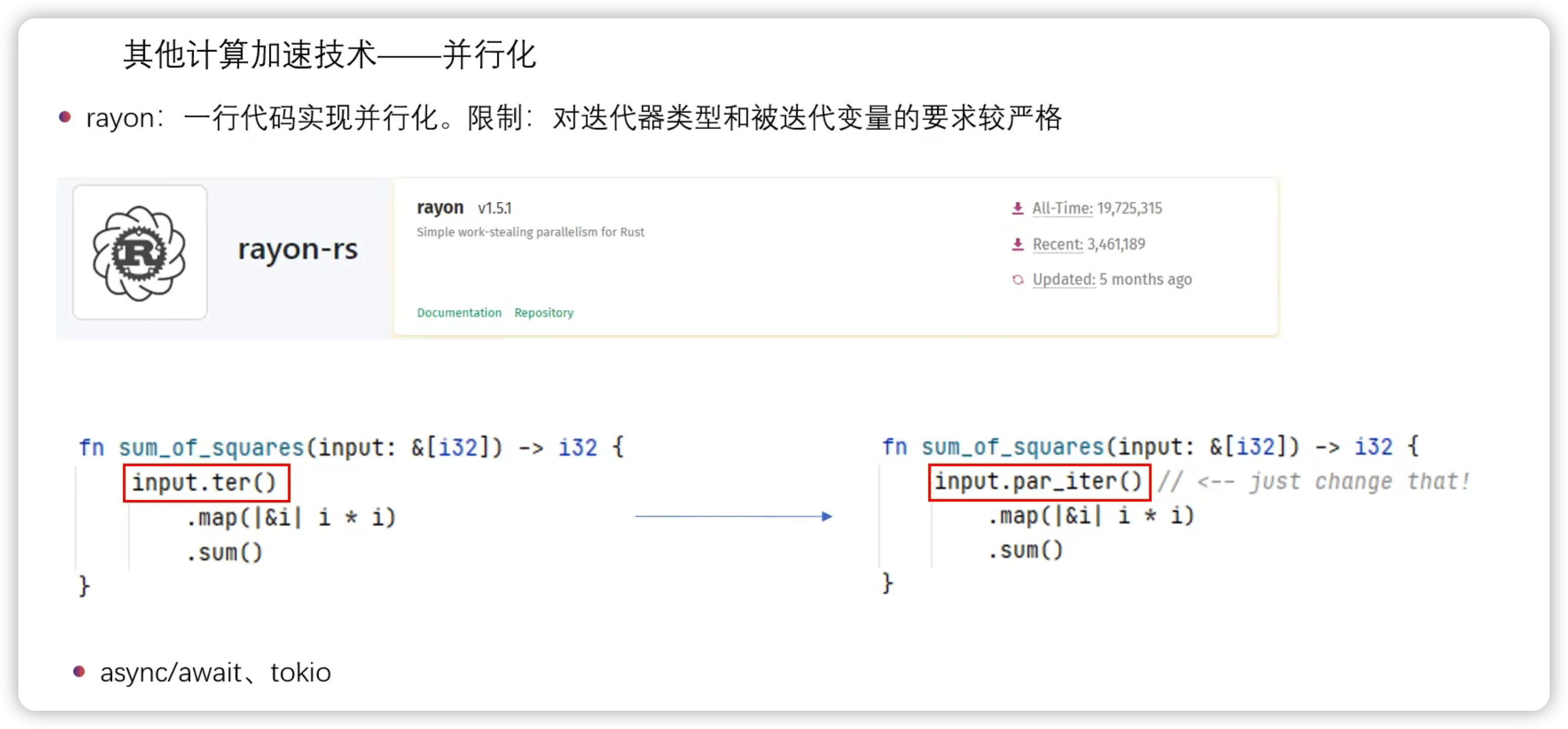 • rayon:一行代码实现并行化
