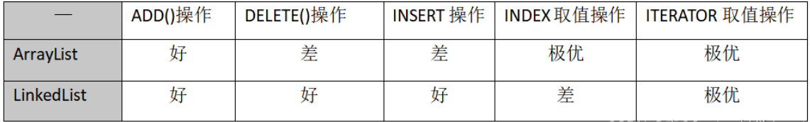 ArrayList和LinkedList在性能上各有优缺点,都有各自所适用的地方,这里将一些性能对比总结如下表