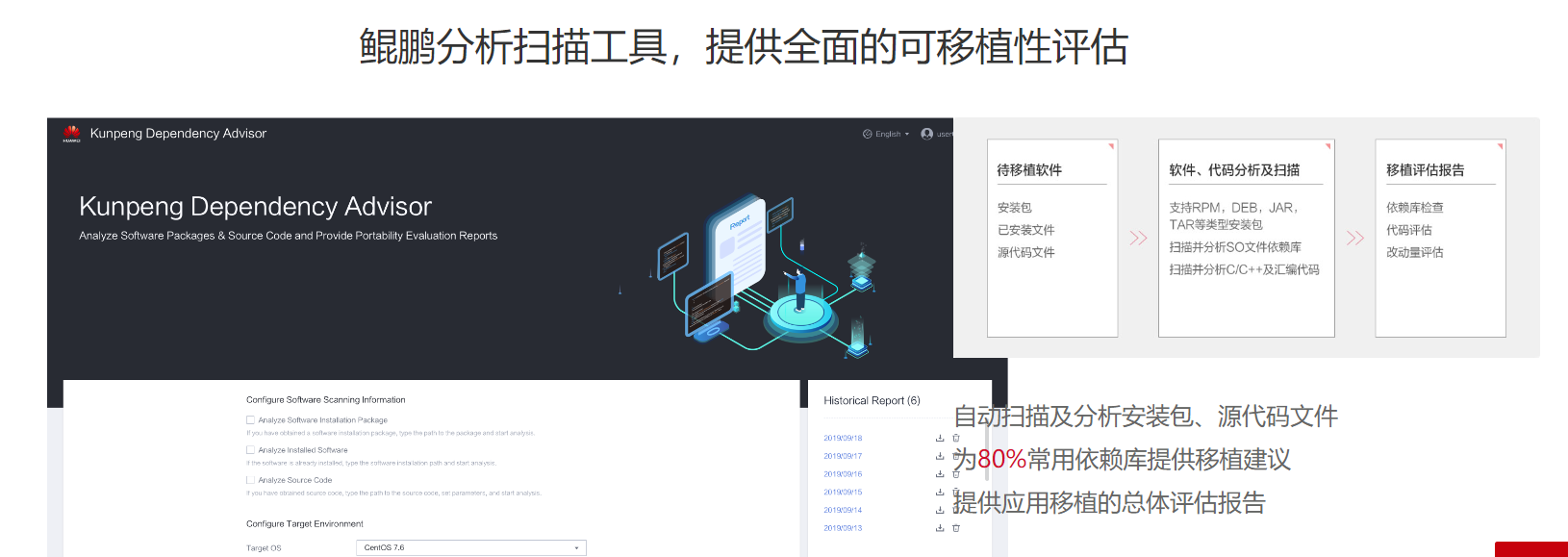 下载的待扫描源码包是能在x86平台上能正常编译的,通过“鲲鹏代码迁移工具”扫描后,识别出在鲲鹏平台上需要适配修改的代码,通过修改,达到能在鲲鹏平台上正常编译和使用的目的,从而实现源码迁移。