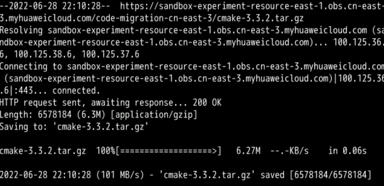 cd ~ && wget https://sandbox-experiment-resource-east-1.obs.cn-east-3.myhuaweicloud.com/code-migration-cn-east-3/cmake-3.3.2.tar.gz