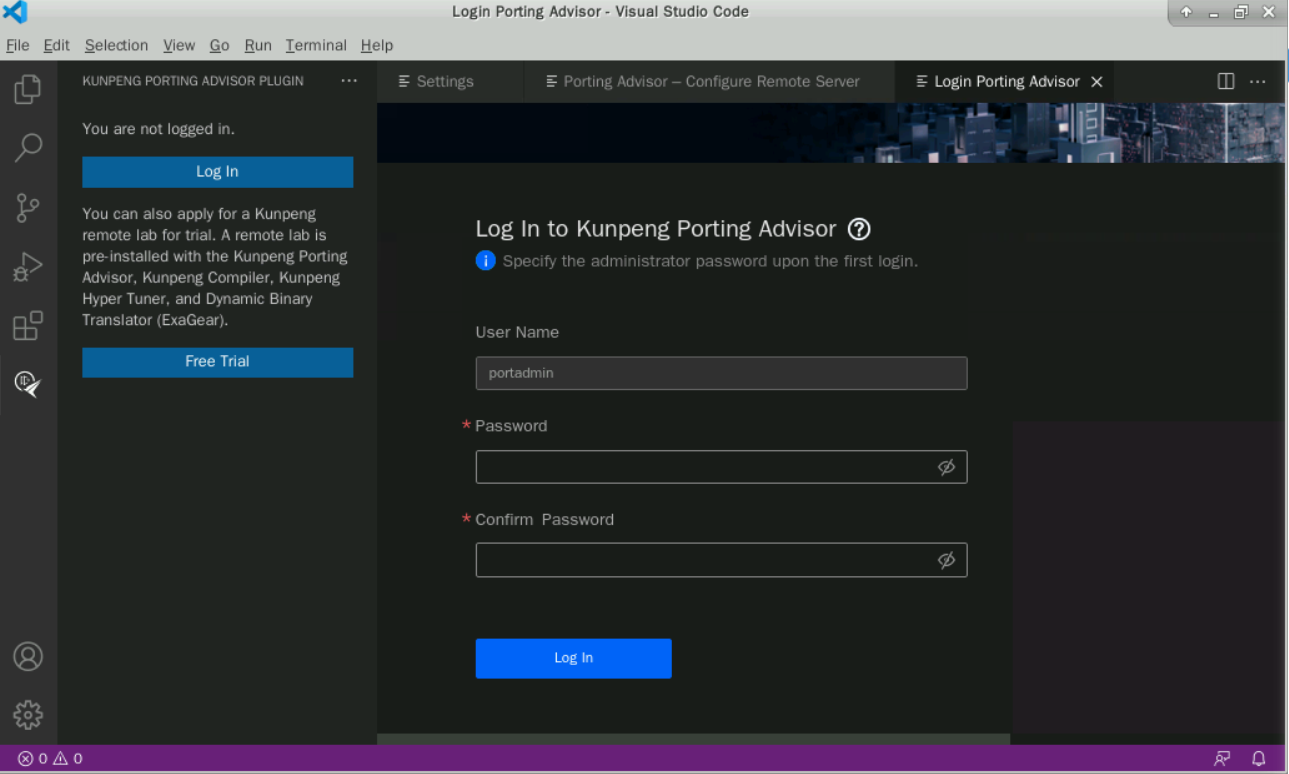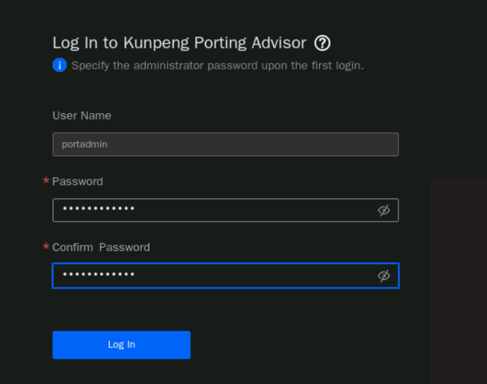 点击“Log In”,创建用户“portadmin”,密码自定义,如下图所示: