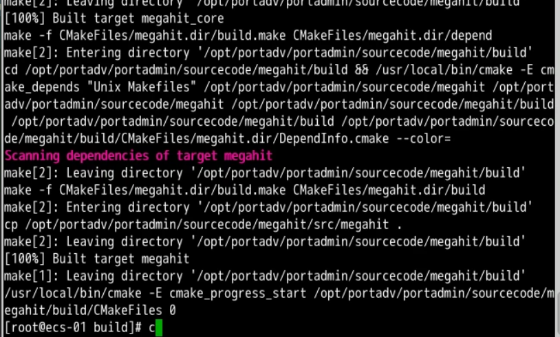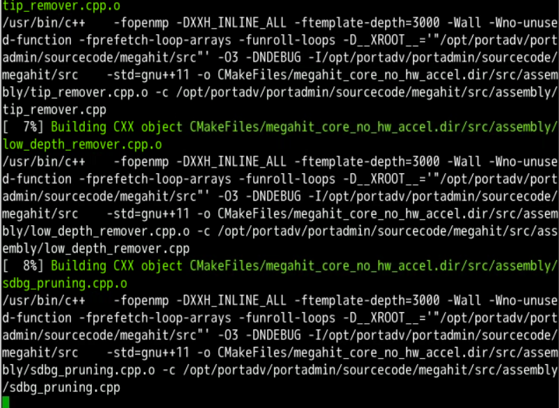 cd /opt/portadv/portadmin/sourcecode/megahit/build && make