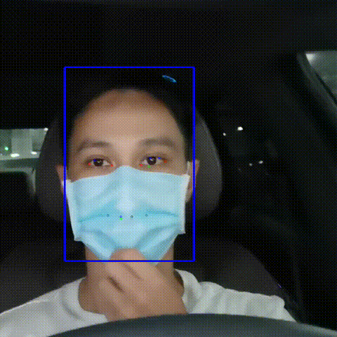 最后,把ROI区域图resize后输入到面部关键点检测,最后把面部关键点输入到疲劳驾驶判断模块给出结果: