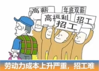 劳动力成本呢越来越高,很多企业都面临招工难的问题。我们去企业很多时候发现,比如说大门口会有一个那个招工的启示,上面要求就变得越来越简单了,比如说他只需要你会一到10的数字,然后会看这个英文字母就可以。那所以这也是一个很现实的问题。