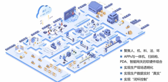第一个就是万物互联,其实万物互联可能听起来比较大。但是对应到一个厂里面或者说一个一个车间里面,其实我们更关心的就是现场的这些设备、人员、产品的生产过程、工序、仓库等等里面的这些协同的要素怎么样能够让他实现互联和数据透明。