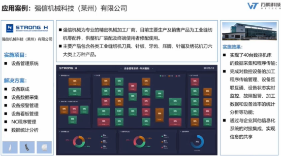 在强信机械科技,由于客户机器精密,比较关心NC程序以及设备本身的告警,通过对40多台设备的连接,实时获取信息,保证生产的问题的及时发现和解决。
