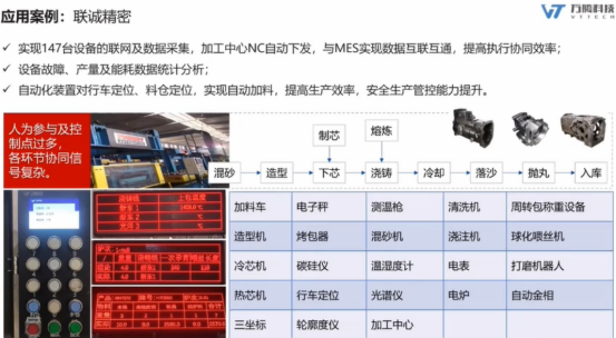 联诚精密铸造工厂,因为铸造环节较多,从混砂到入库中间不能出一点差错,通过对设备的连接和控制,对一些环节实现自动化,提升了生产效率。