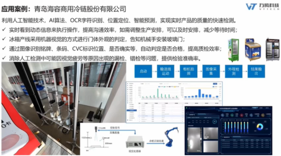 青岛海容,通过AI算法和图像识别,能快速的识别产品是否合格,是否有位置错误、零件遗忘等情况,提升了产品质量,减少了人工成本。