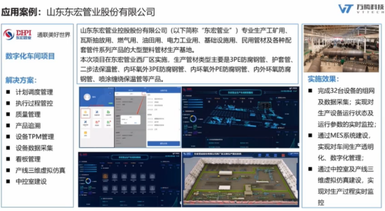 东宏管业,实现对车间设备的连接,MES系统建设,使用仿真的三维模型对工厂现场进行实时模拟实时监控。