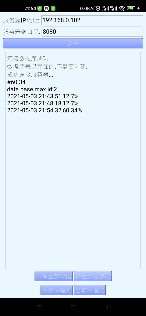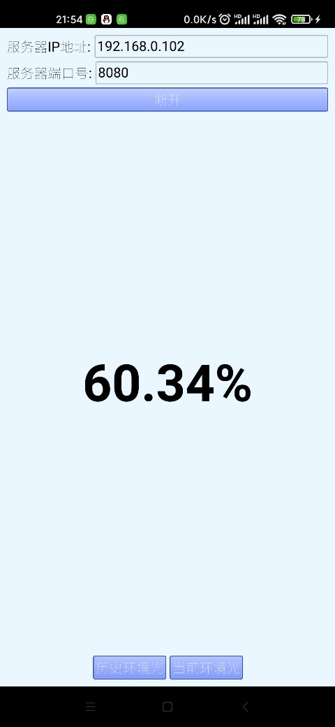 (3). 设计Android手机APP,显示环境光信息。