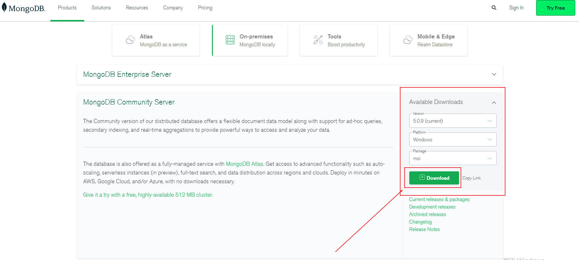 安装地址:https://www.MongoDB.com/try/download/community
