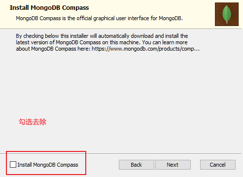 Install MongoDB Compass,那么安装时会卡死,因为这是MongoDB提供的可视化界面,但是下载时会从国外下载。