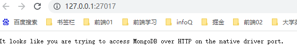 打开浏览器,范围地址http://127.0.0.1:27017/,可看到如下信息