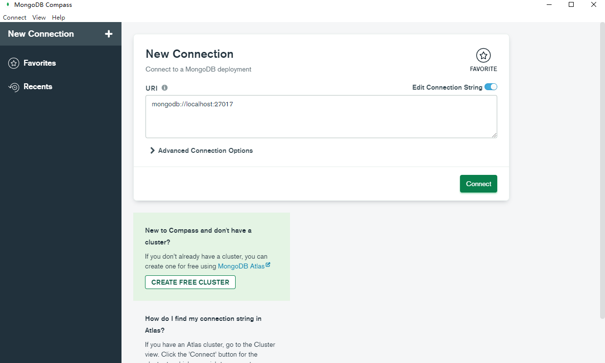 对于MongoDB数据库,如果一直在命令控制符界面中使用有些不太方便,可以使用navicat,也可以直接使用MongoDB提供的图形化界面Compass。