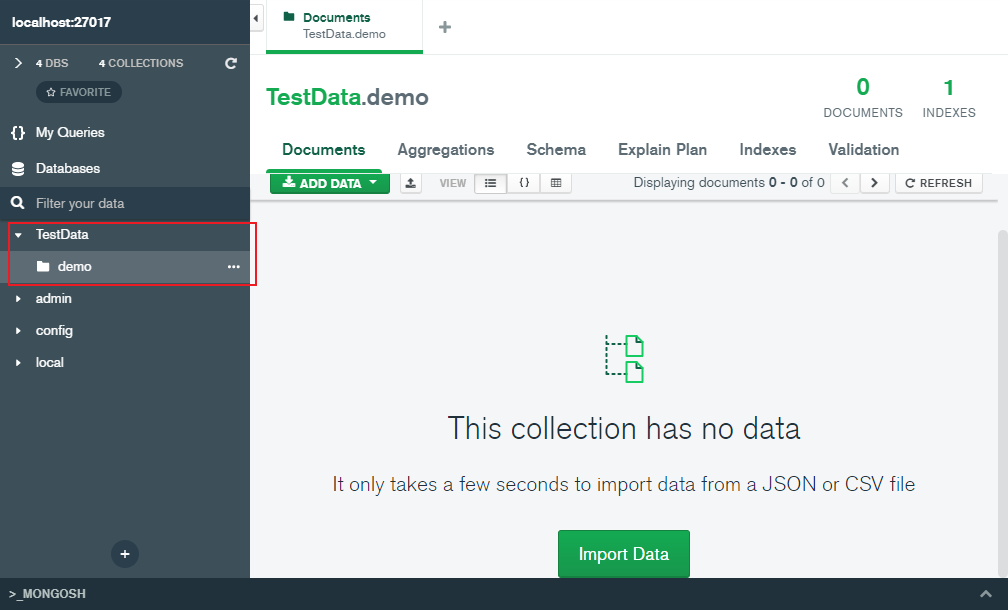 点击connect按钮,然后就会连接到本地27017数据库当中。
