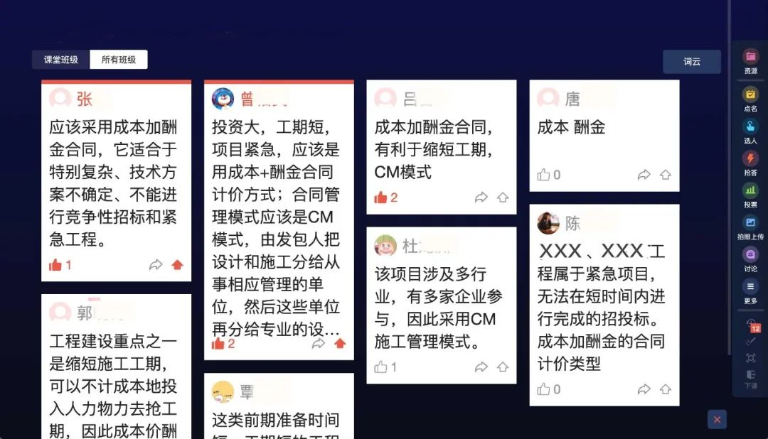 ▲丰富的课堂互动工具