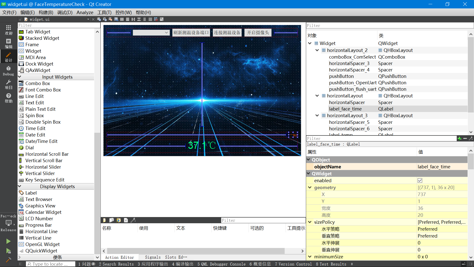 在测温项目里,上位机与STM32之间采用串口协议进行通信,上位机可以打开笔记本电脑默认的摄像头,进行人脸检测;当检测到人脸时,控制STM32测量当前人体的实时温度实时,再将温度传递到上位机显示;当温度正常时,上位机上显示绿色的提示字样“温度正常”,并有语音播报,语音播报的声音使用笔记本自带的声卡发出。如果温度过高,上位机显示红色提示字样“温度异常,请重新测量”,并有语音播报提示。温度过高时,会自动将当前人脸拍照留存,照片存放在当前软件目录下的“face”目录里,文件的命名规则是“38.8_2022-01-05-22-12-34.jpg”,其中38.8表示温度值,后面是日期(年月日时分秒)。