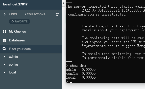 首先测试mongodb数据库是否存在,能否进行相连。