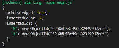 insertOne插入如果成功,将会返回当前文档在集合中的id