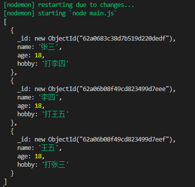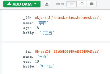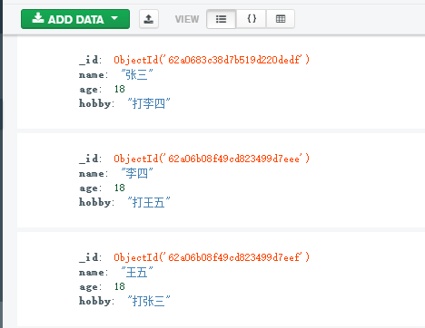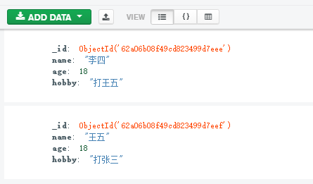 在mongodb中,集合中大部分都是文档,或者前端可以看成键值对的JSON数据