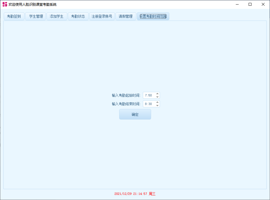 this->setWindowTitle("欢迎使用人脸识别课堂考勤系统");