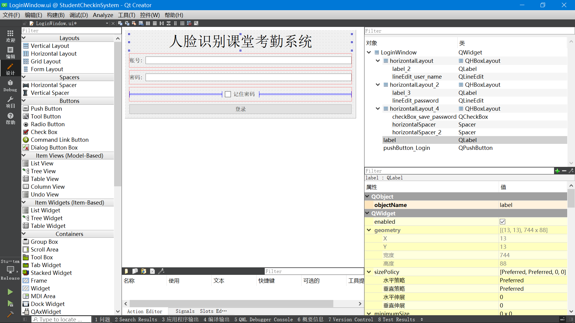 软件一共有7个功能界面,加上登录页面一共有8个界面,登录界面设计了数据库,验证了密码账号,完成登录,登录界面的设计如下: