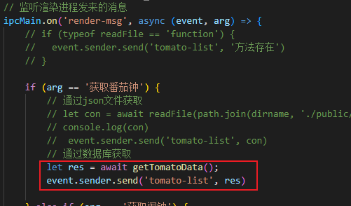 然后之前主进程和渲染器进程之间通过ipcMain和ipcRenderer来获取数据,这一点同样不变,不过将数据从JSON文件中获取变成了从sqlite数据库中获取。