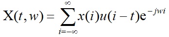 设离散信号为x(t),t = 0, 1, …, N-1,u(i)是窗函数,i = -M, -M+1, …, M-1, M,2*M+1是窗的宽度,则短时傅里叶变换(STFT)定义为: