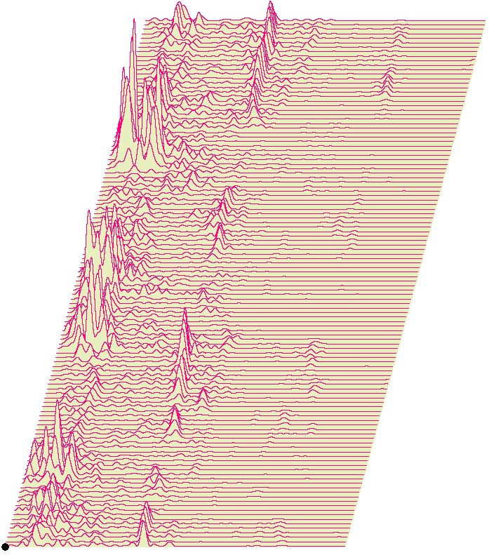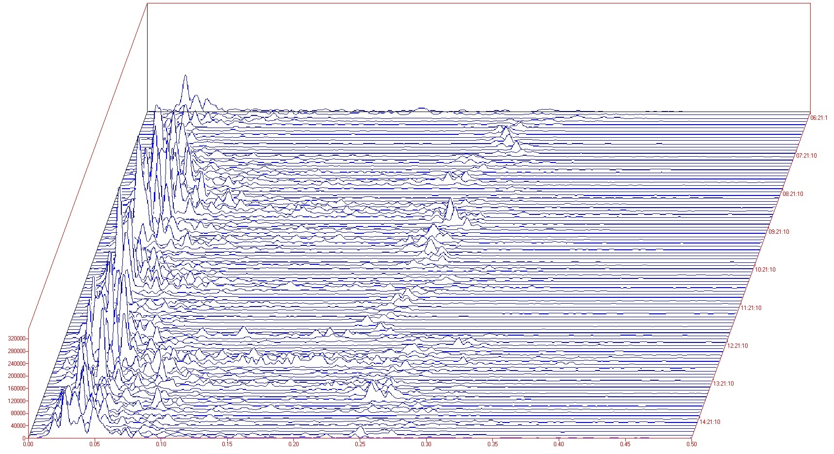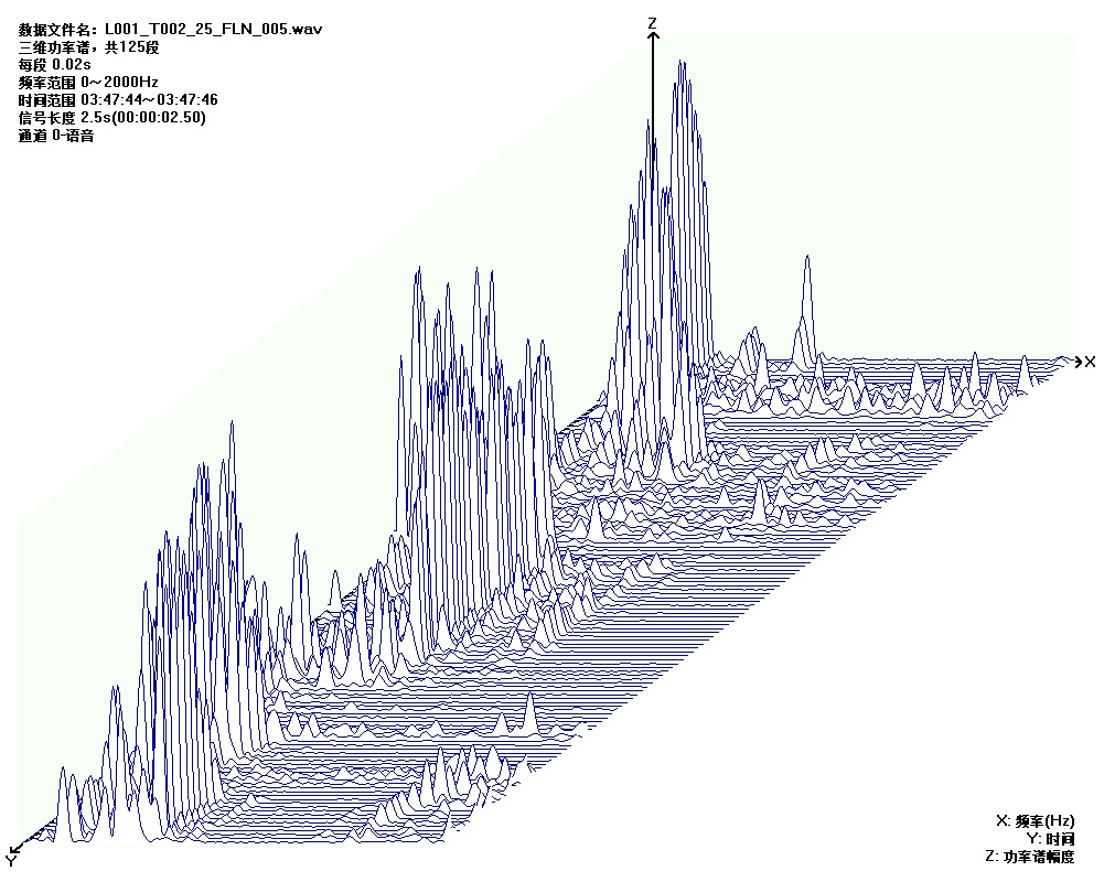 点击上述对话框中的“曲线”按钮,显示用三维曲线表示的动态功率谱。