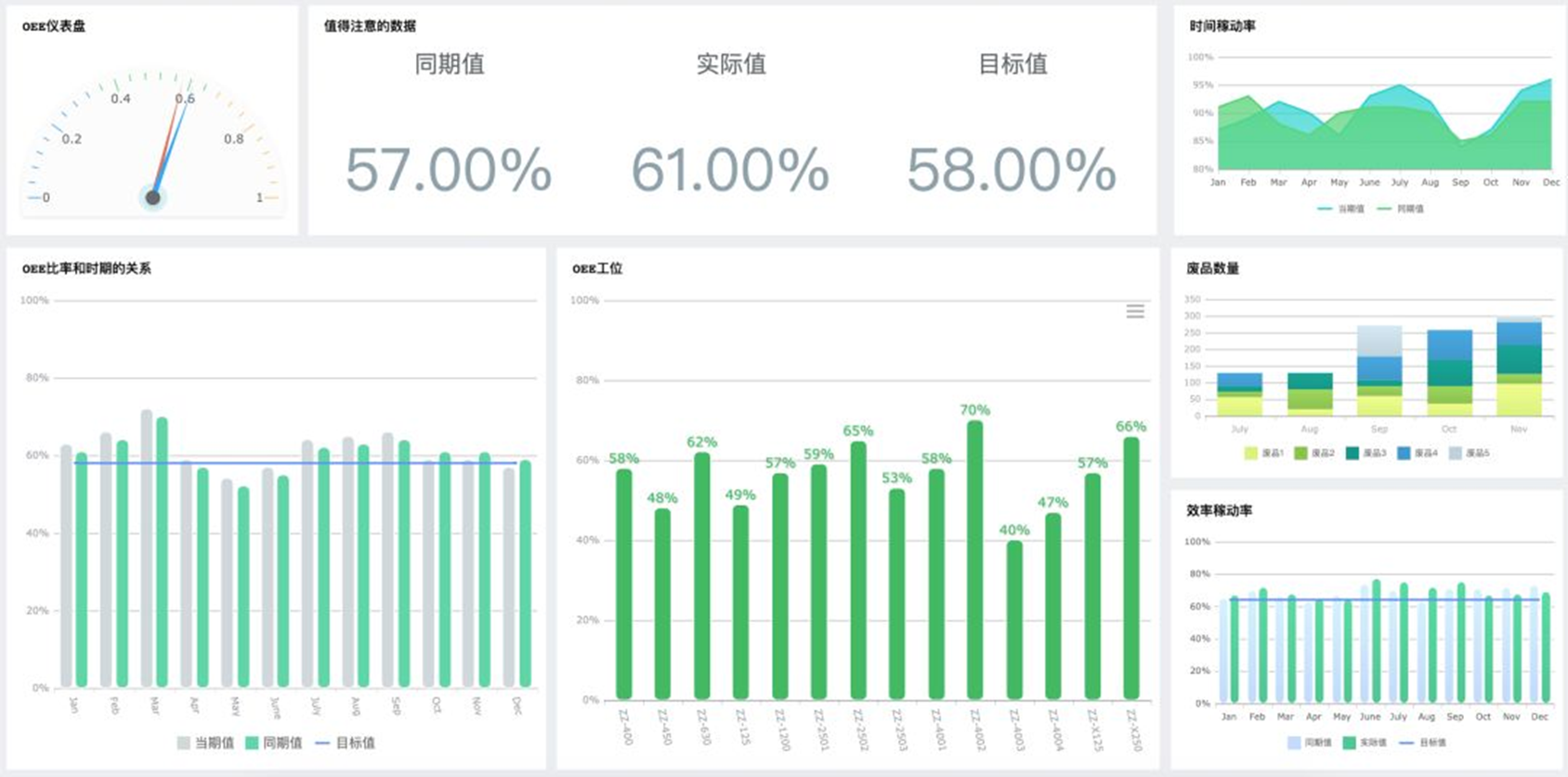 若某月OEE指标偏低,便可追根溯源,通过分析数据来找出问题,并及时做管理上的调整。数据聚合使得企业各厂数据实现统一标准化,省去了大量汇总和统计工作。运行1年后,Y企业厂均设备OEE提高了15%,集团运营效率提升了20%!