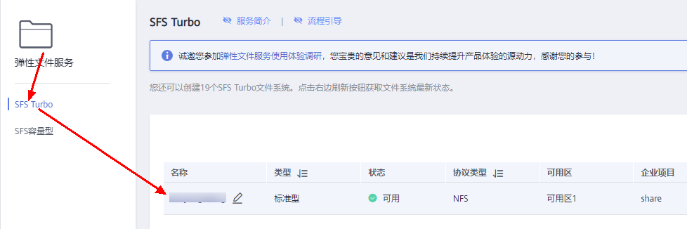 1.ECS节点和SFS的共享硬盘在相同的VPC或者对应VPC能够互联