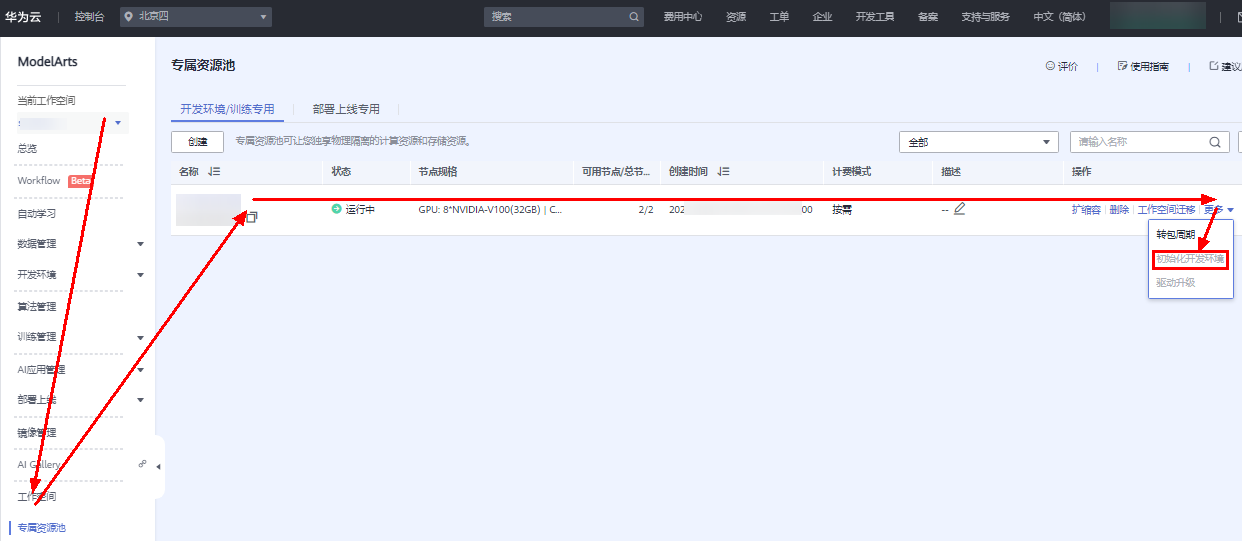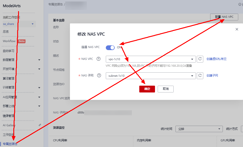 首先创建网络,然后再购买资源池并配置是否可用“训练”或“开发环境”。