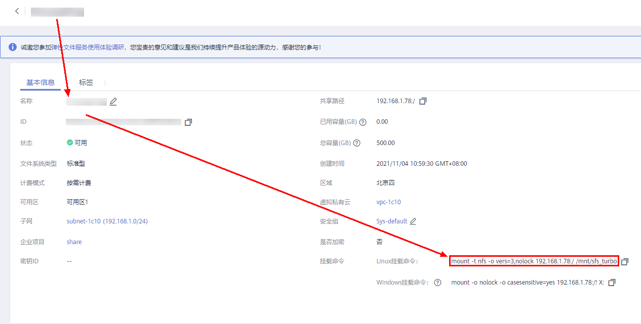 | mkdir -p /mnt/sfs_turbo mount -t nfs -o vers=3,nolock 192.168.0.169:/ /mnt/sfs_turbo |