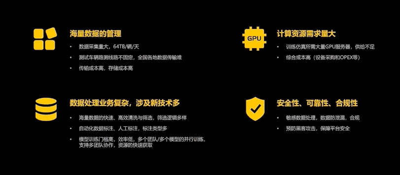中国自动驾驶行业目前面临两个较大的变化。首先,去年11月北京正式开放自动化驾驶的商业化试点,这意味着自动化服务迈过了商业化门槛。与此同时,行业预测在2022年中国路测驾驶里程将达到2132万公里,达到2021年的3倍以上,对应的路测数据预计可达4千PB。海量的路测数据的存储和计算,对于自动驾驶研发平台的建设提出了巨大挑战。