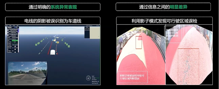 除了对自动驾驶的一些常态化场景进行挖掘,更重要的是一些不常见的难例场景,这些难例场景直击我们算法的痛点,这样才可以真正解决我们未来可能会遇到的问题。通常难例场景有两种表现手段,第一种为通过明确的系统异常表现;第二种则是通过信息之间的明显差异来表示。