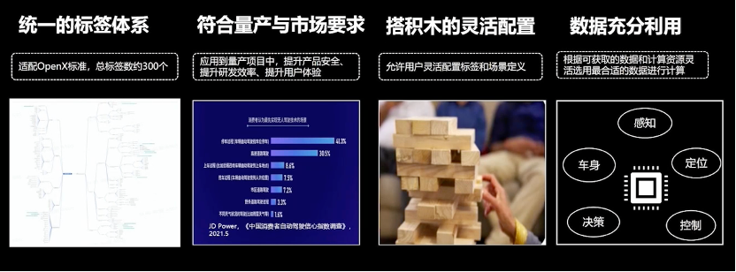 经过多年的积累,禾多科技总结了很多的经验。基于OpenX的标准形成了一个统一的标签体系,可以保证各个部门之间的标签对齐且场景一致。同时根据对量产与市场的需求,我们也利用了搭积木的这样一种方式,允许用户可以自定义,方便后期迭代。