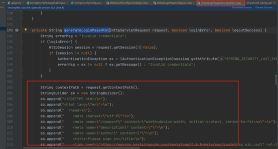 其实这个登录页面是一个默认filter里面直接写入response的,可以在自定义实现的 WebSecurityConfigurerAdapter 中有找到这么一个方法,再在其中找到一个 默认配置