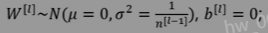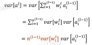 a(l-1)为第l-1层的输入,a(l)为第l层的输出,因此n(l-1)Var[w(l i)]=1,所以var[w(l i)]=1/(n(l-1))
