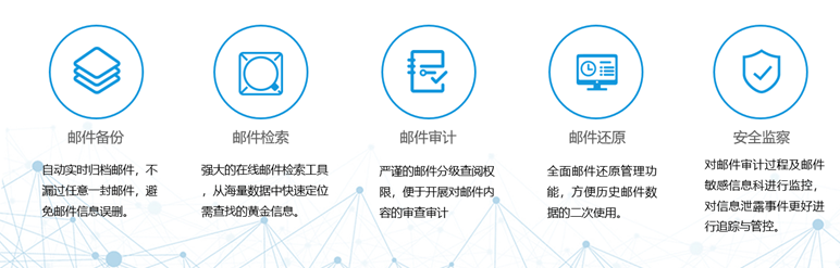这些也都不是问题,云归档可自动实时归档邮件,有效保存黄金邮件内容,规划邮件信息管理,独创的审计项目流程,确保邮件审计安全规范。