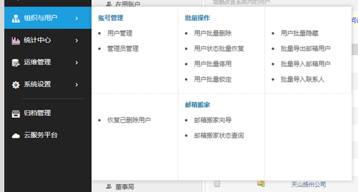 云享版企业邮箱为企业管理提供组织与用户管理,还可以对用户进行批量删除、恢复等等操作。