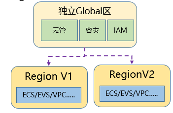 类似公有云架构理念,主打政企客户本地部署的华为云Stack保持和华为公有云同架构,包括Region、AZ、主机组等相关区域概念也基本一致。从云平台相关组件/云服务作用域划分来看,通常业界也会将组件/云服务部署位置分为Global作用域和Region作用域,Global组件/服务就是属于云的管理区。