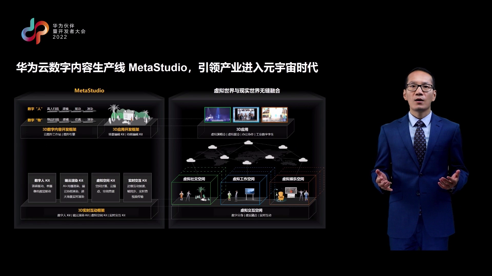 在6月15-16日举行的华为伙伴暨开发者大会2022期间,以“创新无限,一切皆服务”为主题的技术论坛在线上举办。华为云媒体服务产品部部长吕阳明在会上发表了题为《MetaStudio数字内容生产线,让虚拟世界与现实世界无缝融合》的演讲,介绍了华为云MetaStudio数字内容生产线的整体方案,并系统化阐释了MetaStudio如何助力“数字人”内容创作与应用。湖南多豆乐公司创始人兼CEO刘主力在会议上也分享了多豆乐漫娱传媒基于华为云MetaStudio开发3D直播数字人的案例,介绍了华为云为多豆乐提供的云上实时渲染直播解决方案。