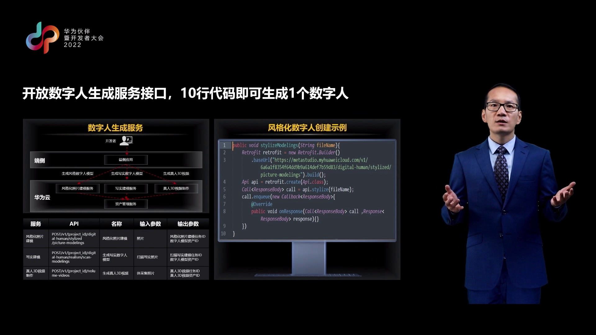 目前华为云MetaStudio数字人服务已面向广大开发者开放API,开发者可以直接调取对应的API,快速创建不同类型的数字人。以风格化数字人为例,通过10行代码即可实现数字人生成,人人都能快速拥有自己的数字人。在元宇宙大热的当下,华为云MetaStudio数字内容生产线让各行业客户都可以便捷地在云上生产数字内容、开发3D应用,打造虚拟演唱会、虚拟展会、办公协作、工业数字孪生等一个又一个的元宇宙空间,同时支撑海量用户的实时互动,让虚拟世界和现实世界无缝融合,助力客户和伙伴抢占元宇宙时代先机。