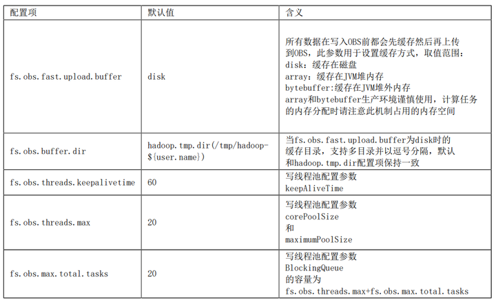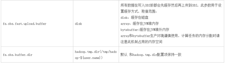 (2)当缓存 fs.obs.fast.upload.buffer 设置为 array 或 bytebuffer 时,生产环境谨慎使用,计算任务的内存分配时请注意此机制占用的内存空间